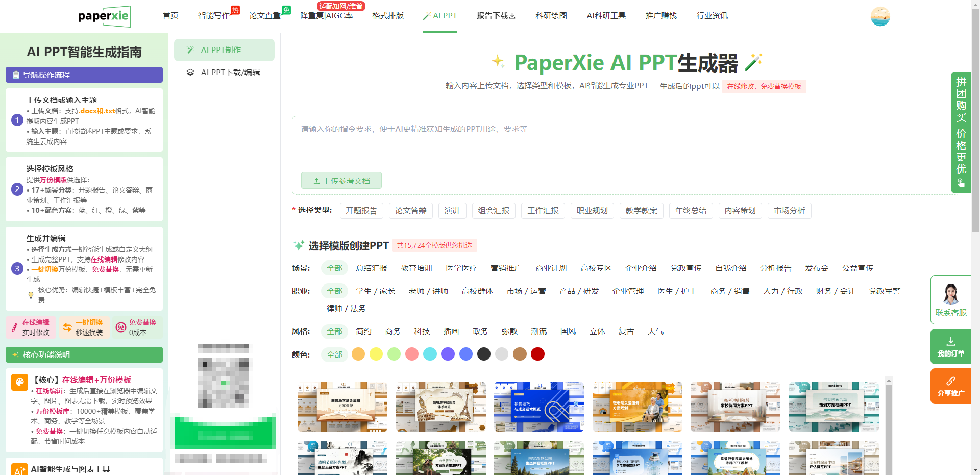 市面上的 AI PPT 工具不少,但 Paperxie 能脱颖而出,核心原因有三点。第一,真・懂本科生,所有功能都围绕答辩需求设计,从内容提炼到模板选择,再到在线编辑,每一步都贴合学生的使用习惯;第二,真・免费,15000 + 模板全部免费,没有隐藏收费,对预算有限的本科生特别友好;第三,真・一站式服务,论文写作、查重降重、PPT 制作都能在一个平台完成,不用来回折腾,效率直接拉满。