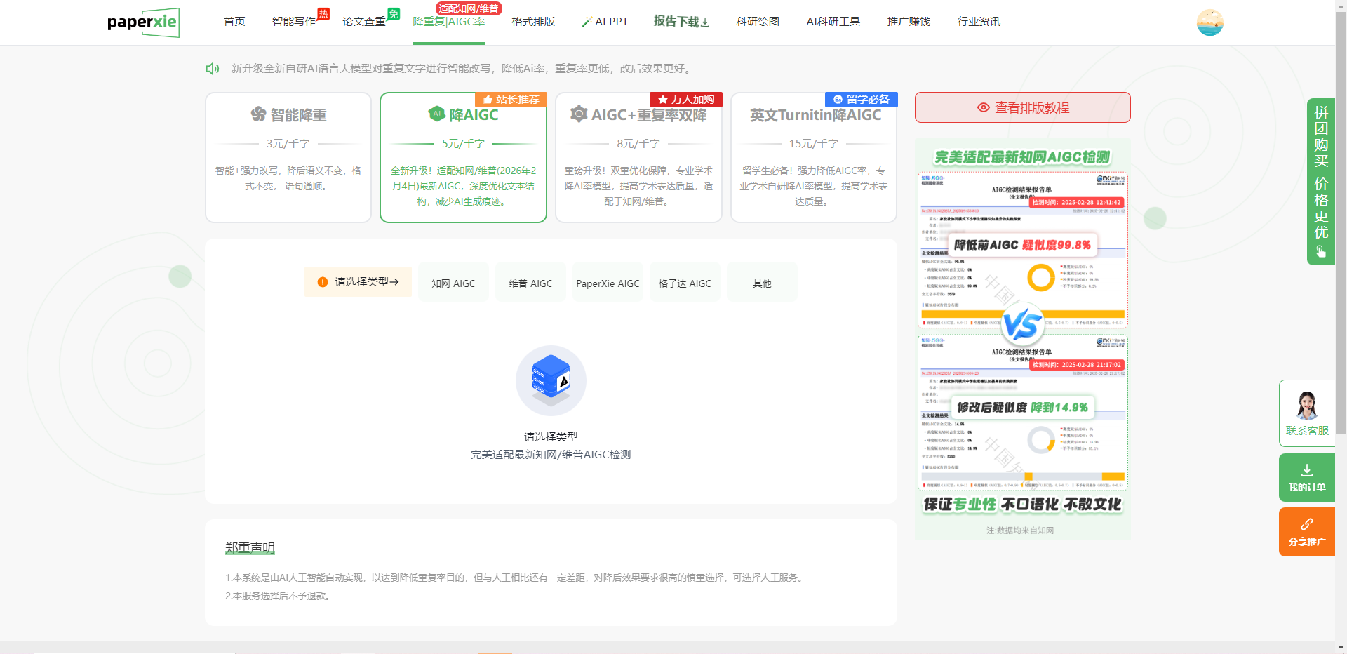 打开 Paperxie 的降重复 / AIGC 率功能页,最亮眼的就是针对不同用户需求打造的四大降重方案,覆盖从国内本科生到海外留学生的所有场景。基础款的智能降重定价 3 元 / 千字,采用智能 + 强力改写技术,在保留原文语义和格式的前提下优化语句,性价比极高,适合预算有限的本科生应对基础查重需求;平台主推的 AI 降 AIGC 方案 5 元 / 千字,是 2026 年全新升级的版本,专门适配知网、维普 2 月 4 日更新的最新检测规则,深度优化文本结构,从根源上消除 AI 生成痕迹,是应对学校 AIGC 筛查的首选;爆款的 AIGC + 重复率双降方案 8 元 / 千字,能同时降低两项指标,还能提升学术表达质量,满足需要双重过检的用户需求;针对留学生的英文 Turnitin 降 AIGC 方案 15 元 / 千字,配备专业学术自研模型,保证改写后的论文符合海外学术规范,还承诺不通过包退款,彻底解决留学生的检测焦虑。这四大方案分类清晰,价格透明,用户可以根据自己的检测需求和预算灵活选择。